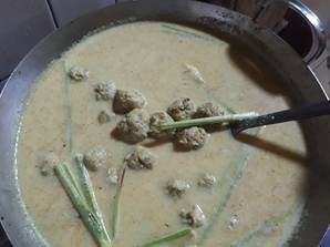 50 gram maizena cairkan bersama sedikit santan. Tapi tidak akan mengurangi banyak sekali kok.